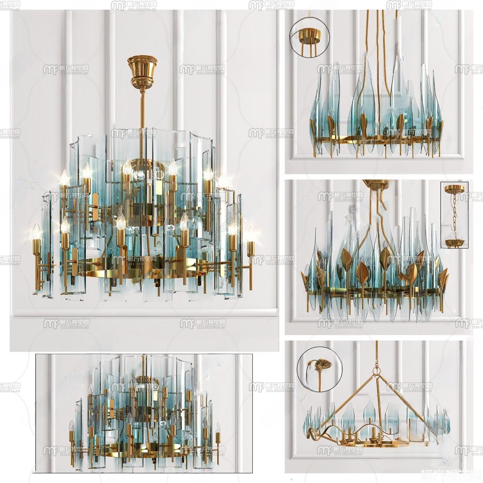现代金属玻璃吊灯组合3D模型(ID:0014494)