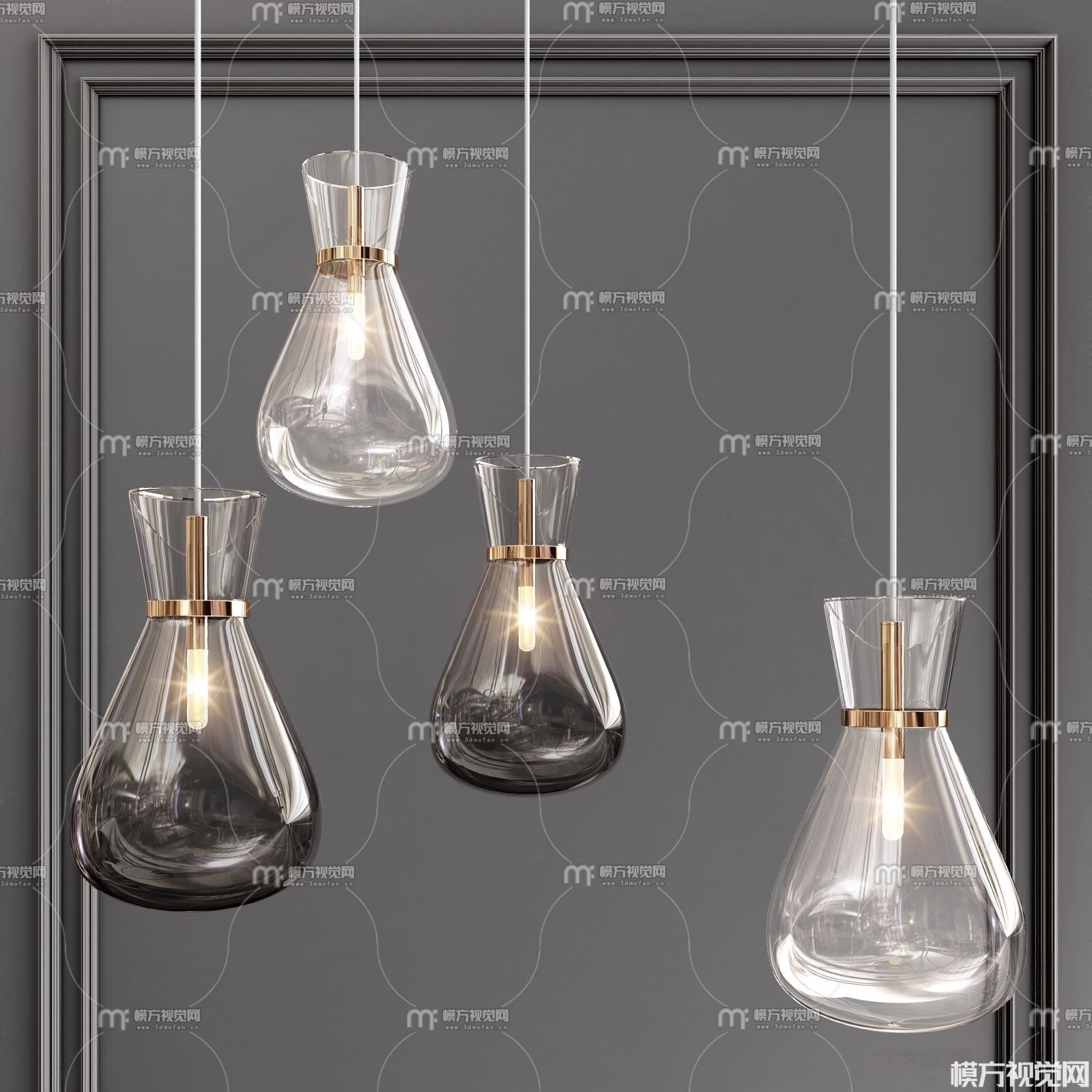 现代金属玻璃艺术吊灯3D模型(ID:0014495)