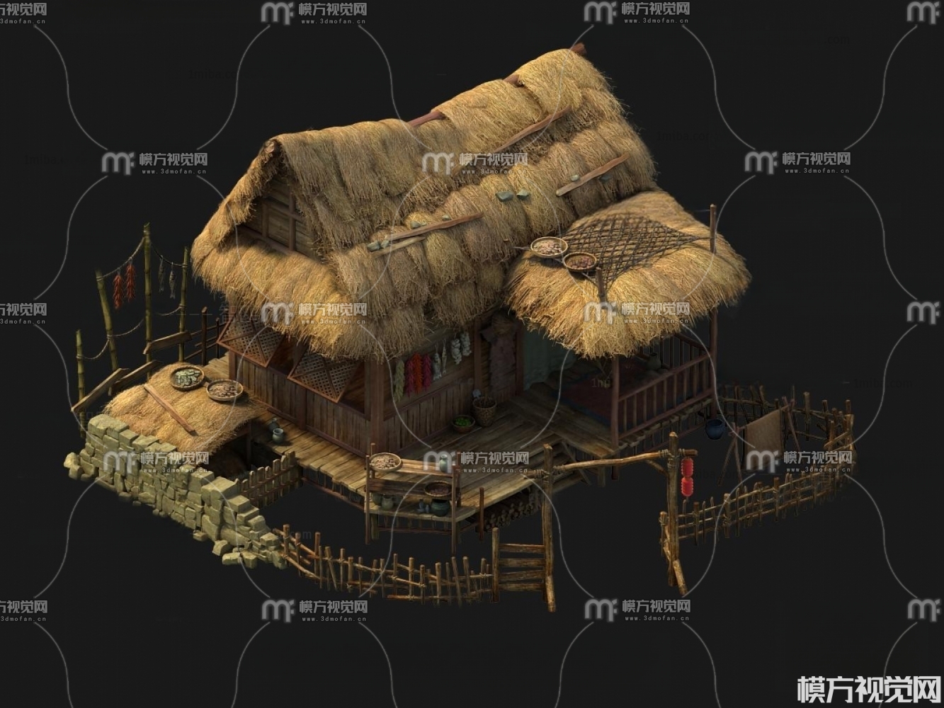 现代茅草屋 建筑外观3D模型(ID:0001452)