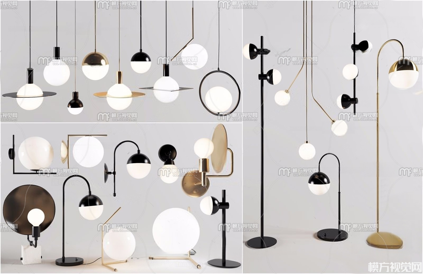 现代吊灯壁灯组合3D模型(ID:0014528)