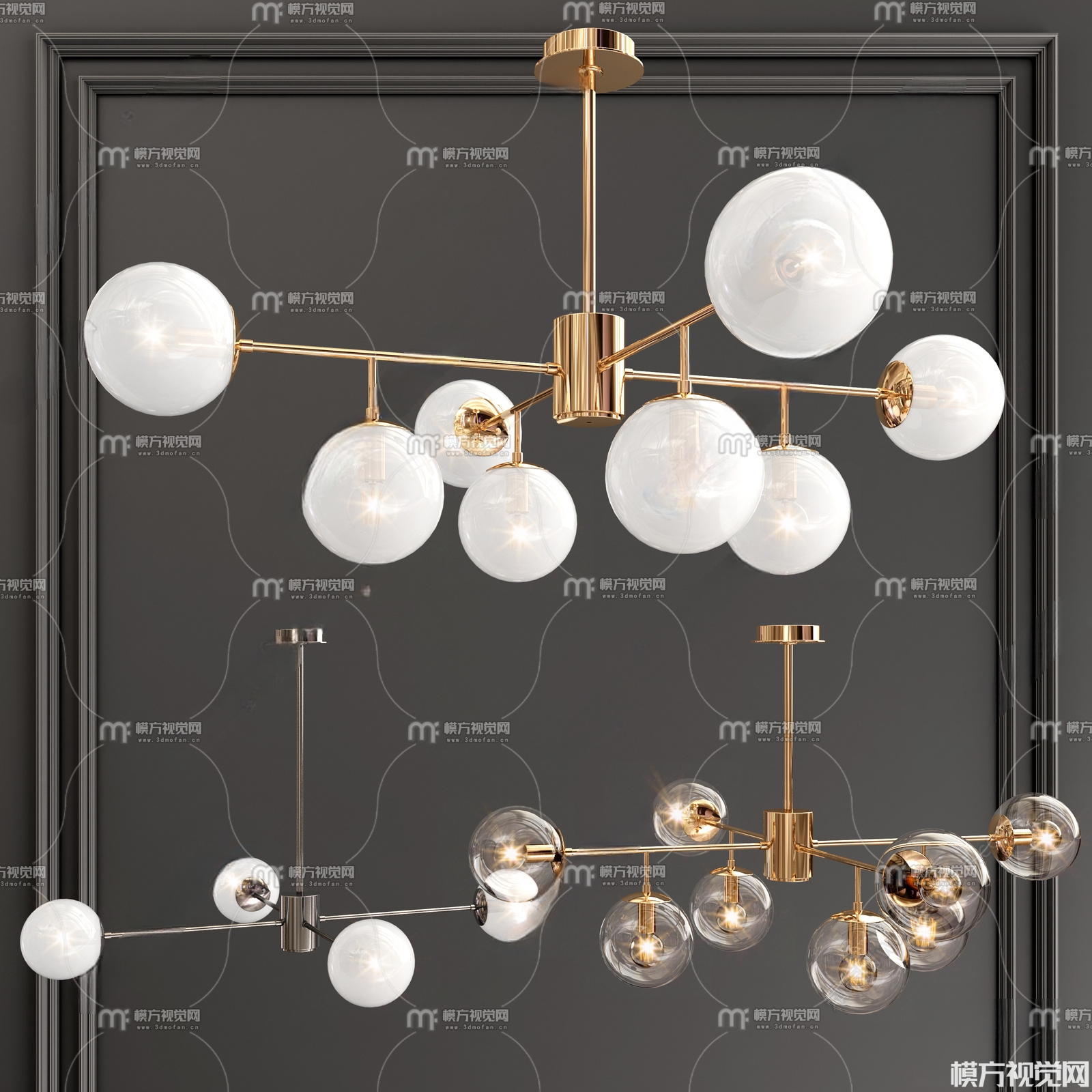 现代轻奢玻璃吊灯3D模型(ID:0014533)