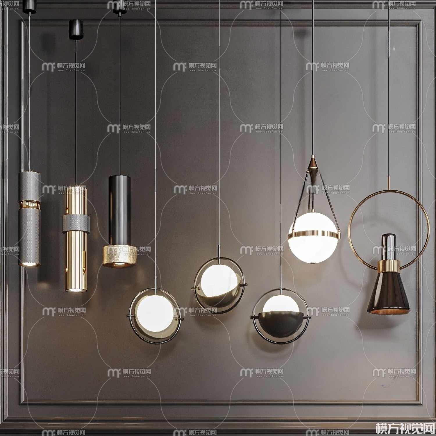 现代轻奢小吊灯组合3D模型(ID:0014534)