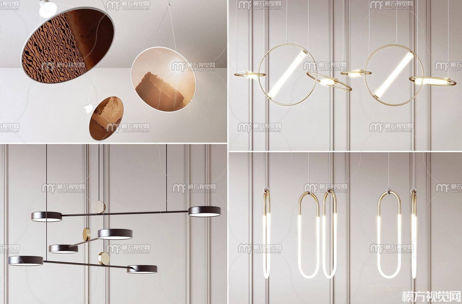 现代轻奢吊灯组合3D模型(ID:0014536)