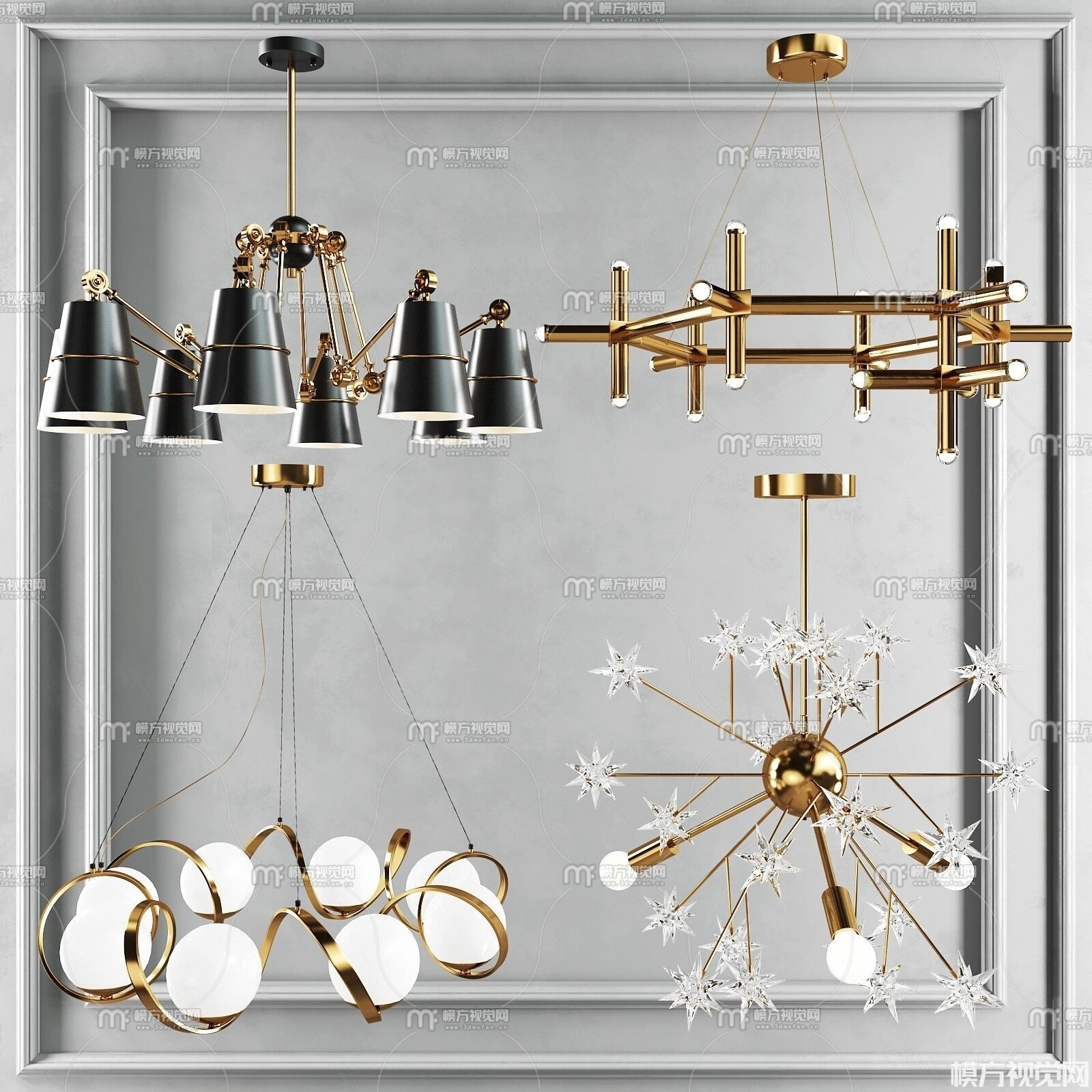 现代轻奢吊灯组合3D模型(ID:0014537)