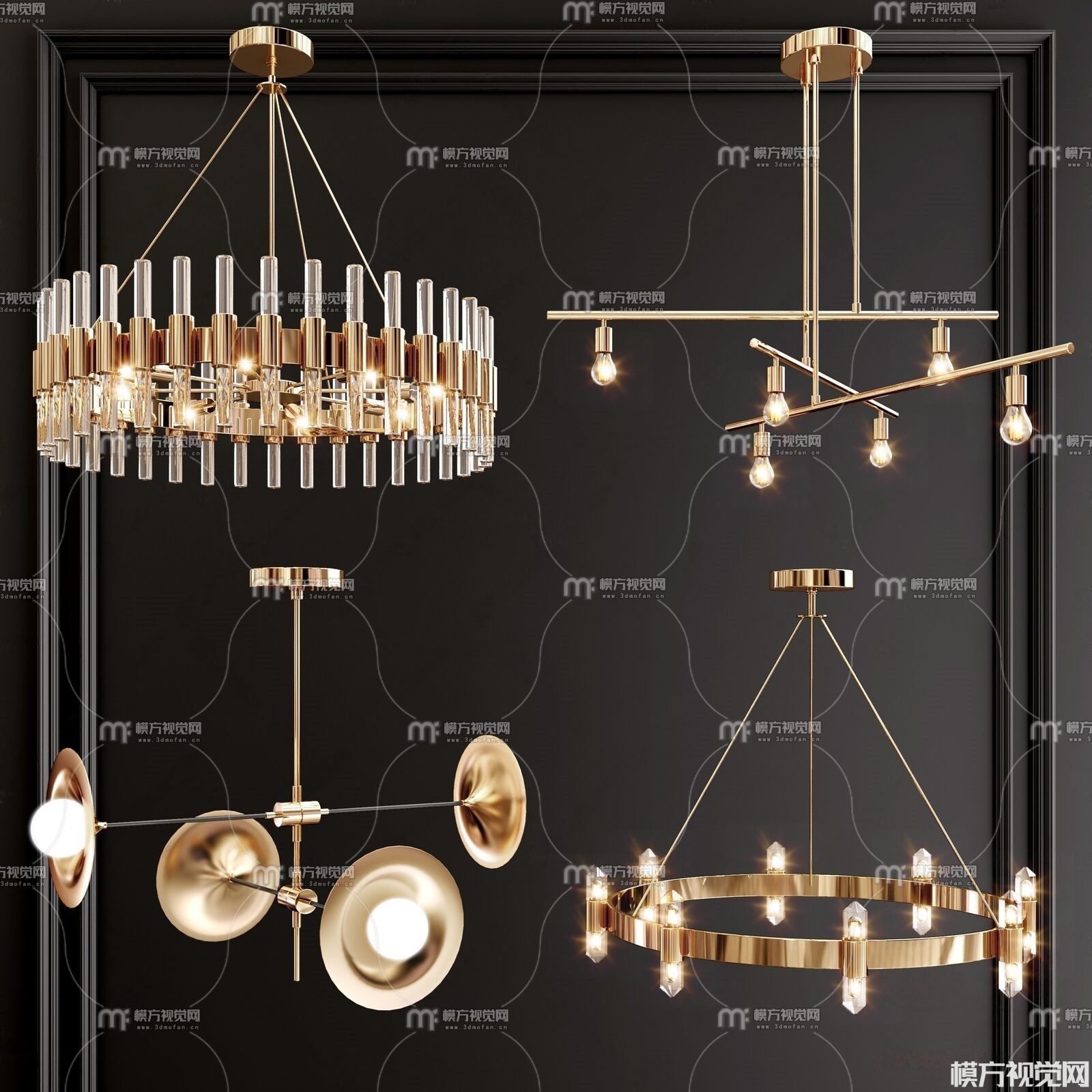 现代轻奢吊灯组合3D模型(ID:0014540)