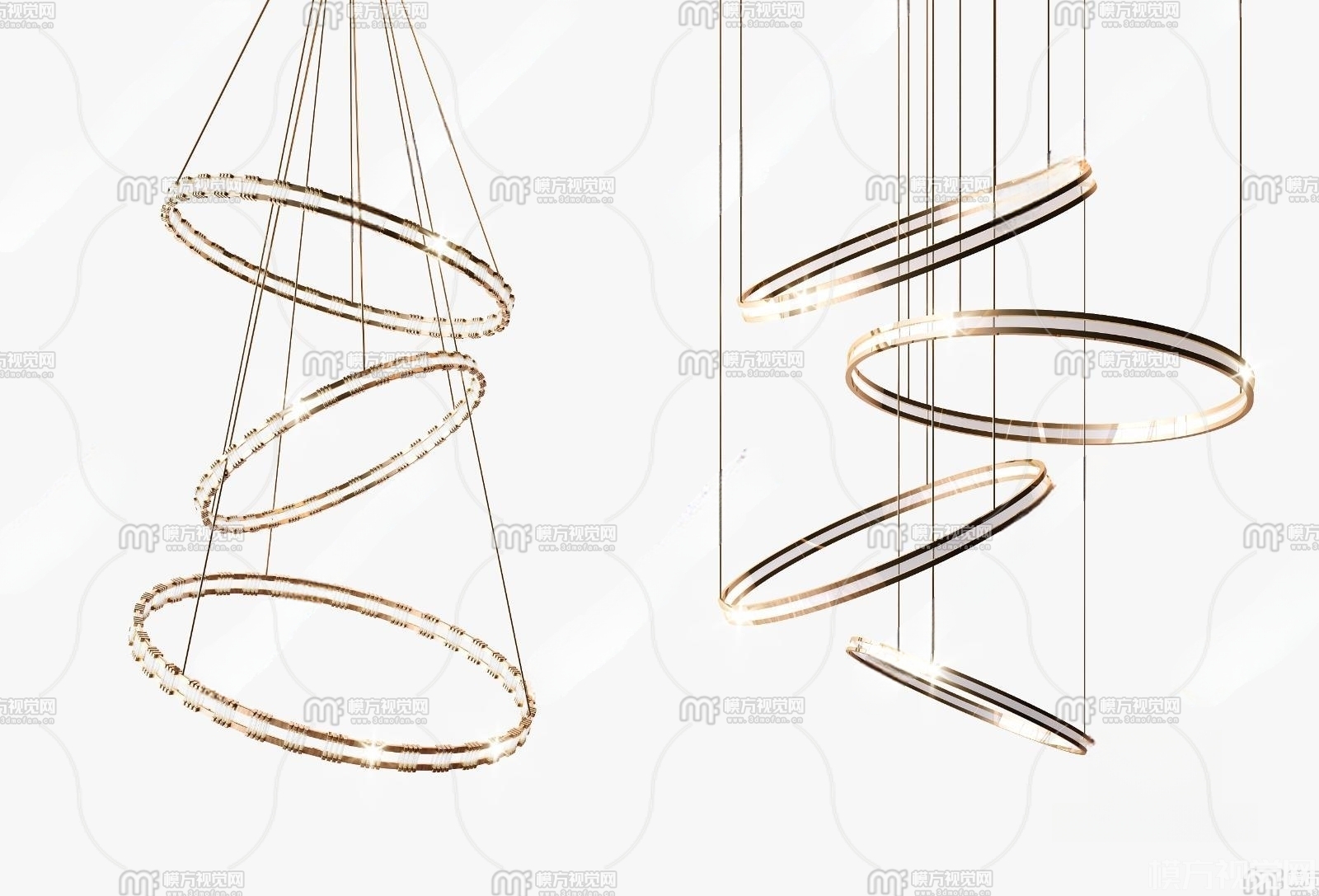 现代轻奢金属圆圈吊灯3D模型(ID:0014545)