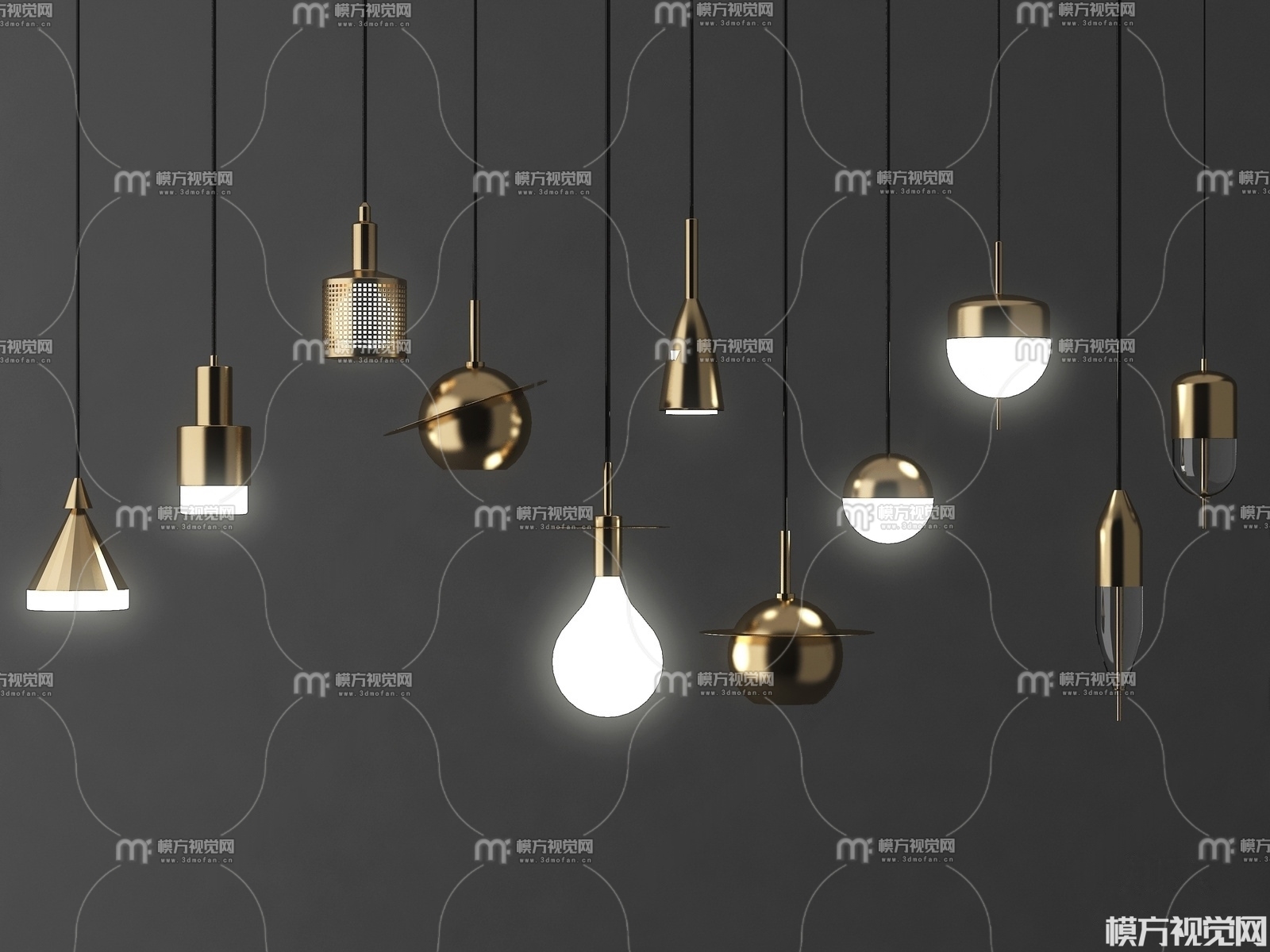 现代轻奢时尚小吊灯组合3D模型(ID:0014546)