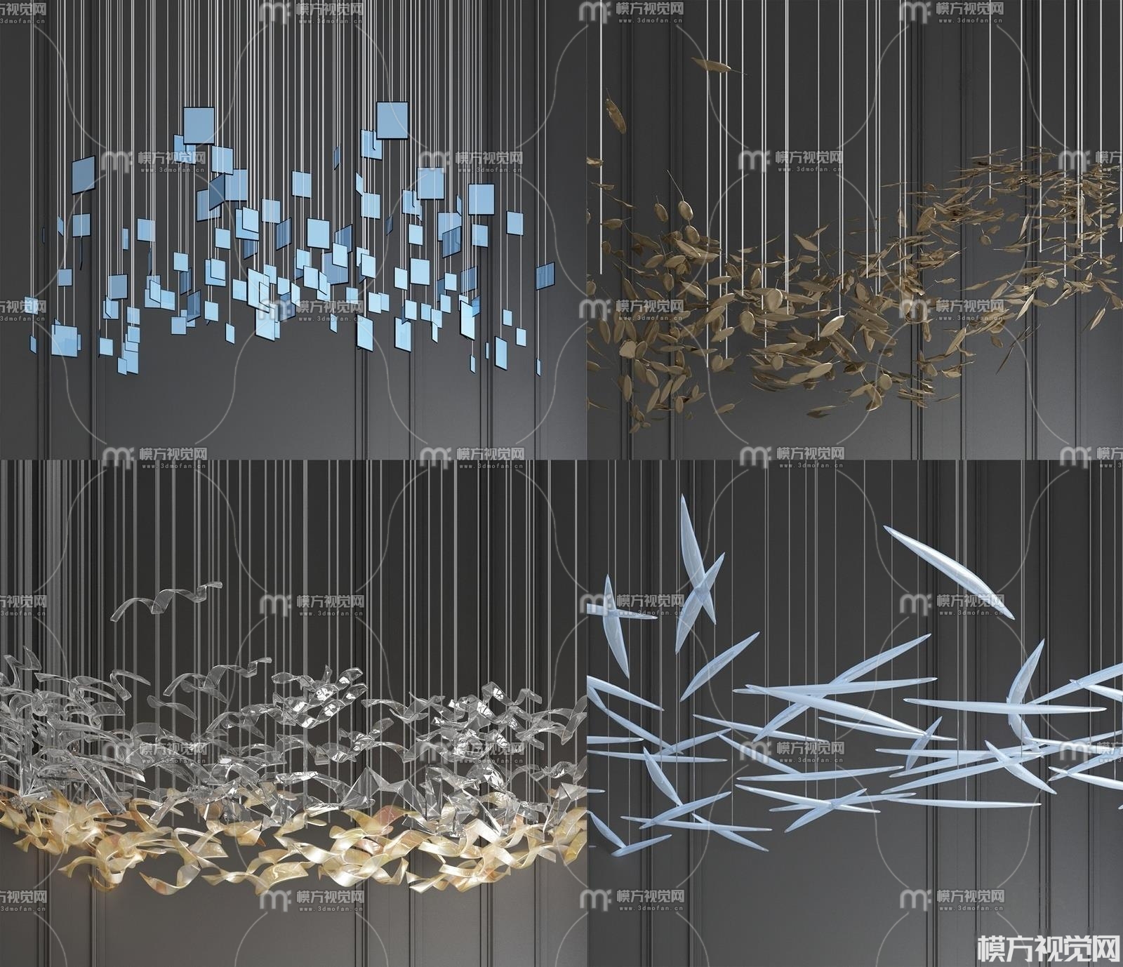 现代水晶方片装饰吊灯3D模型(ID:0014560)
