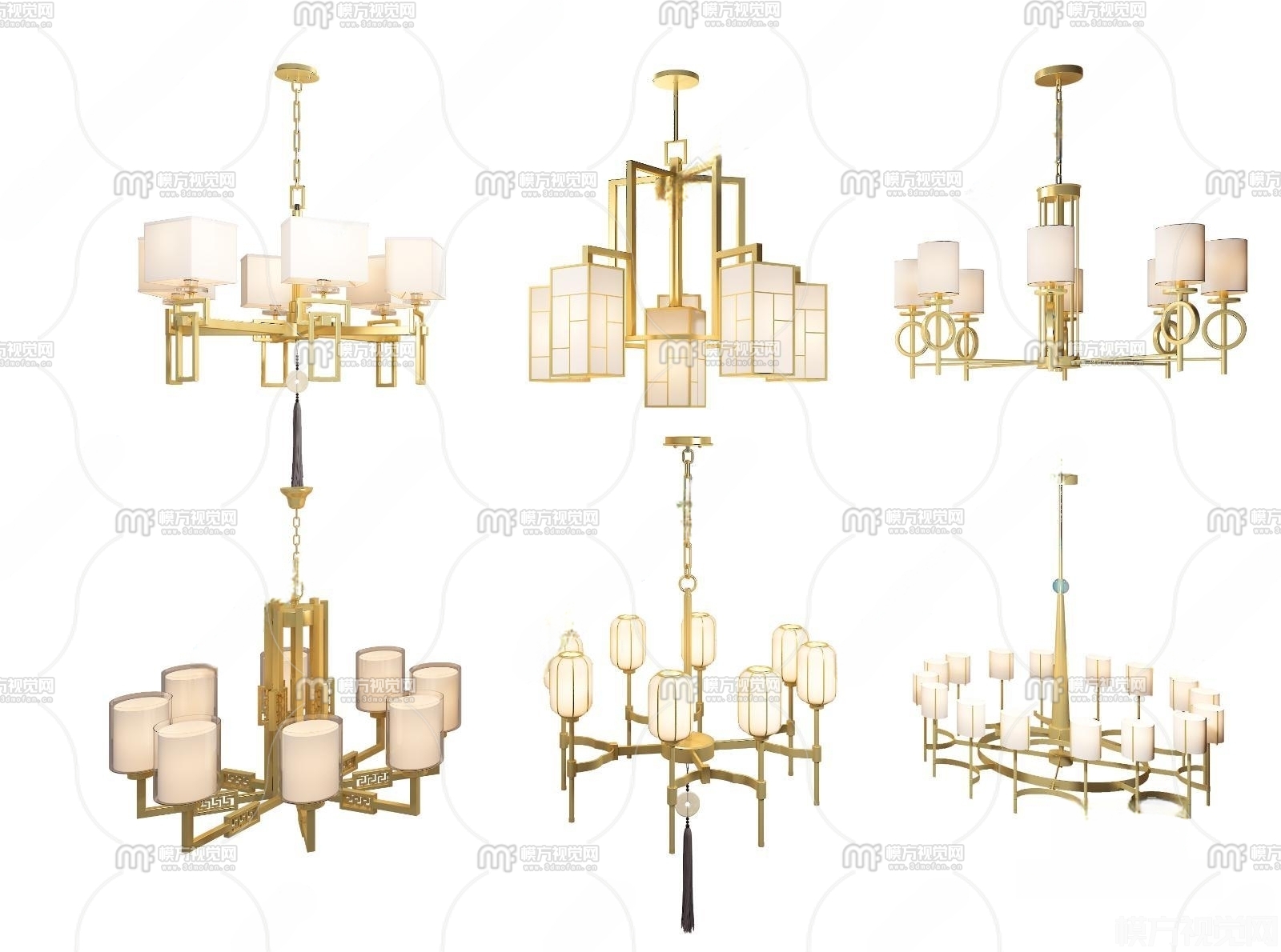 新中式金属轻奢吊灯组合3D模型(ID:0014597)