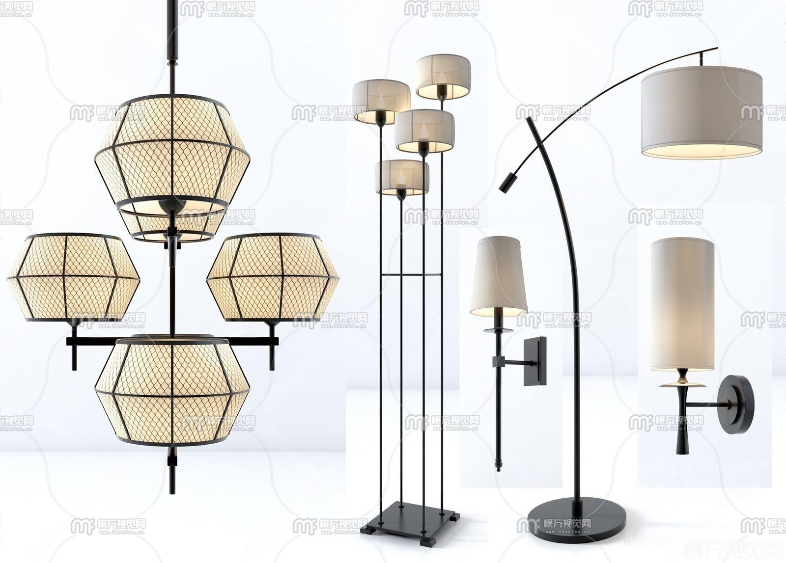 新中式吊灯台灯壁灯组合3D模型(ID:0014610)