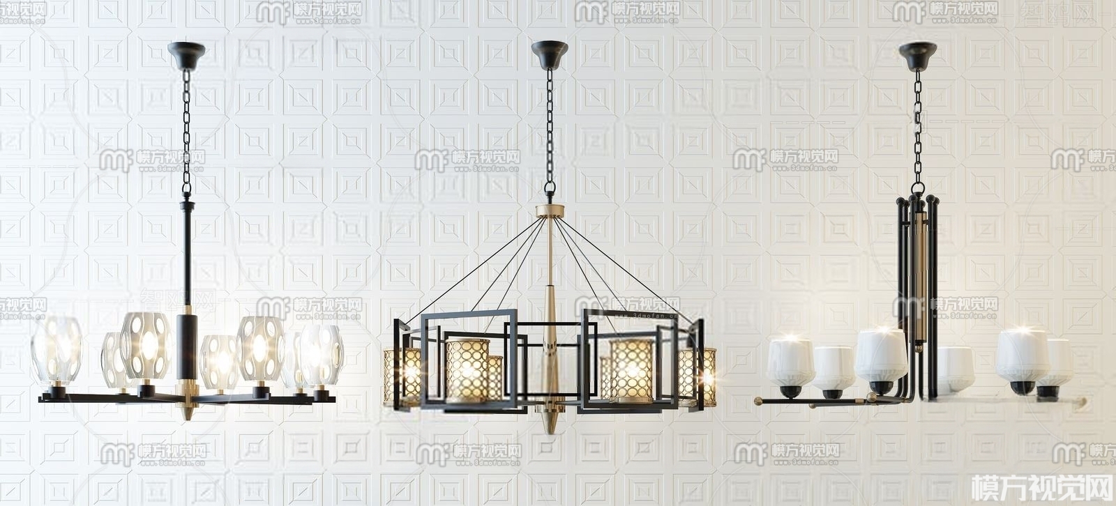 新中式吊灯组合3D模型(ID:0001472)