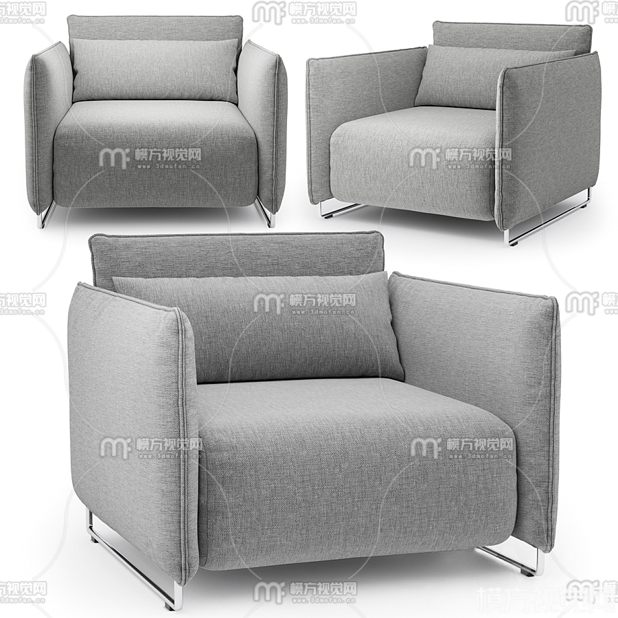 现代布艺单人沙发3D模型(ID:0014804)