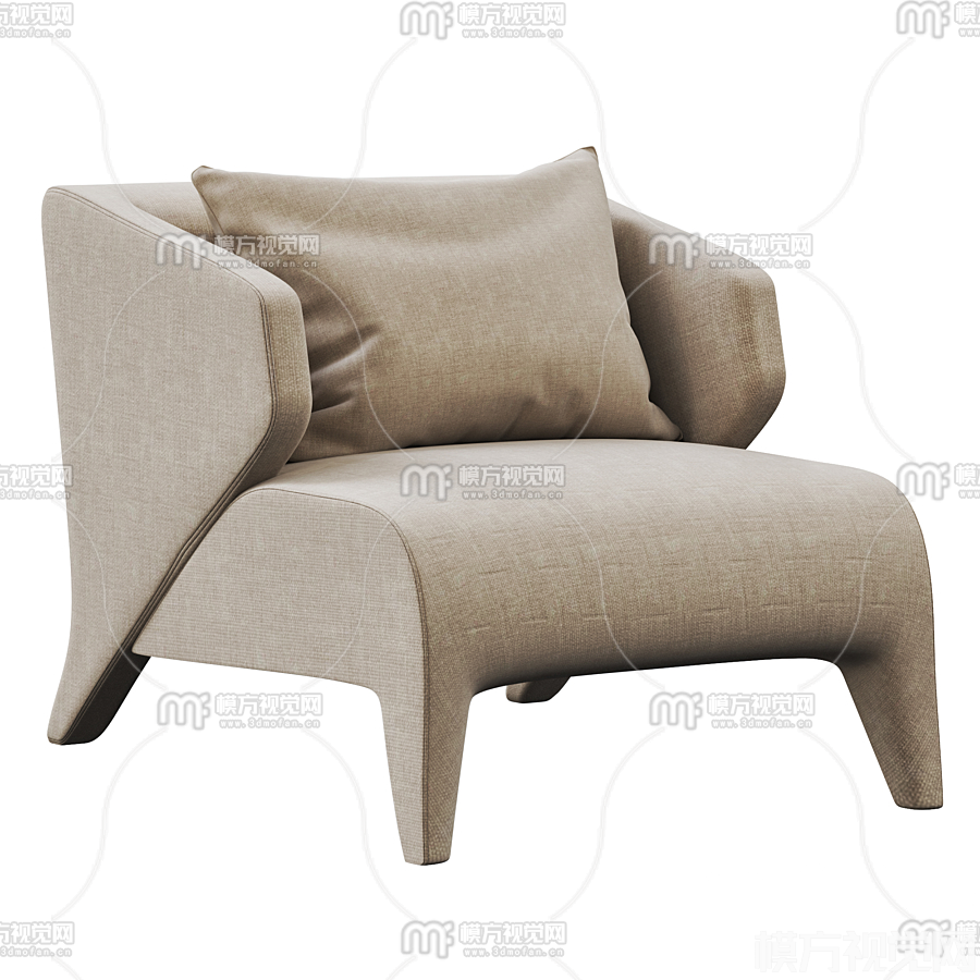 现代布艺休闲沙发3D模型(ID:0014808)