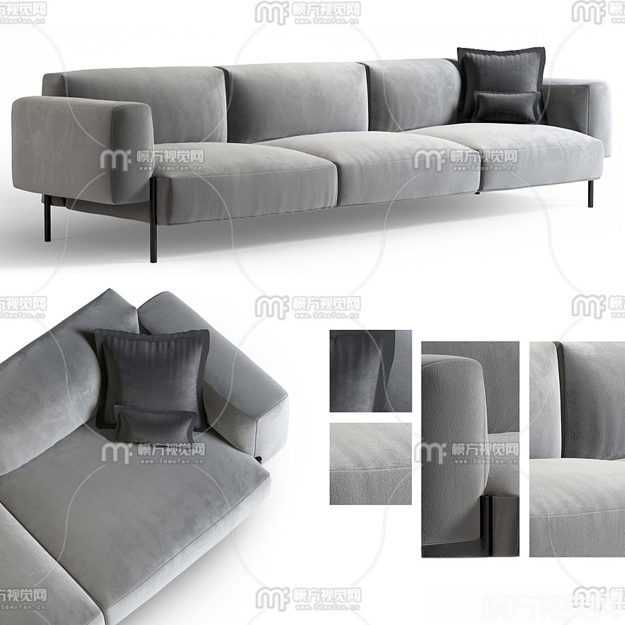 三人沙发 布艺沙发3D模型(ID:0014914)