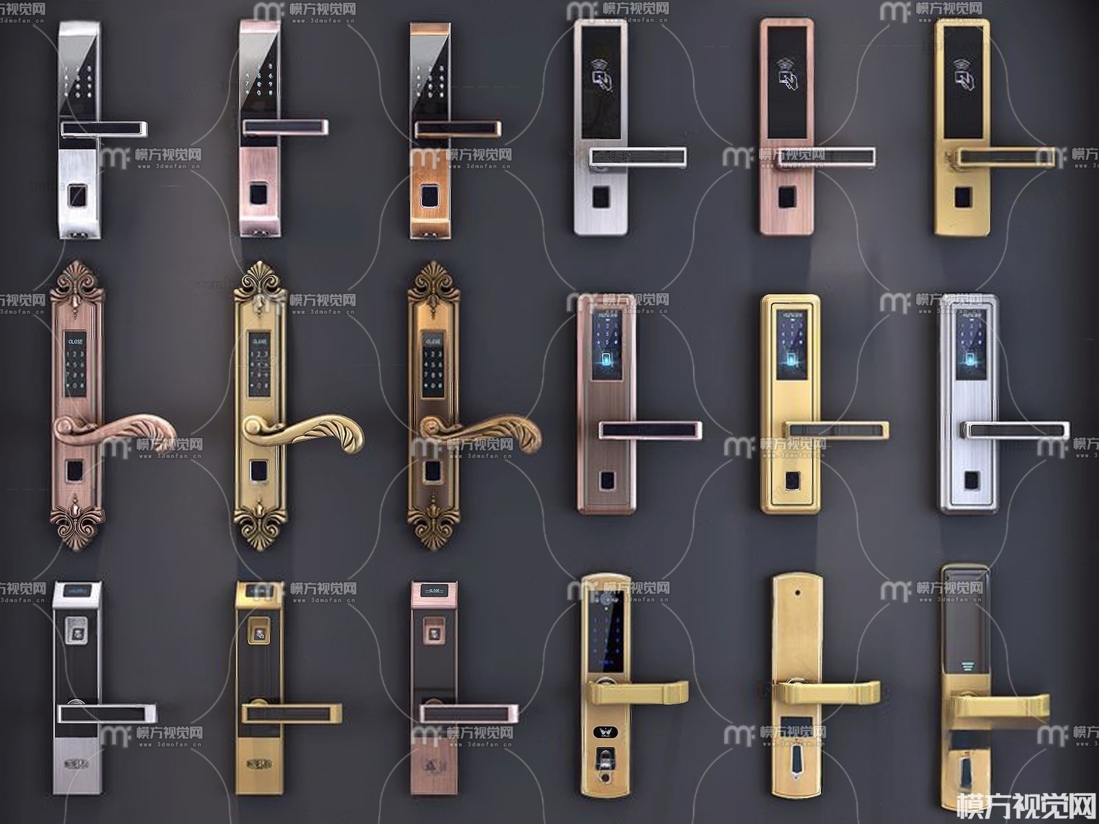 智能锁 指纹锁 密码锁 防盗锁组合3D模型(ID:0001493)