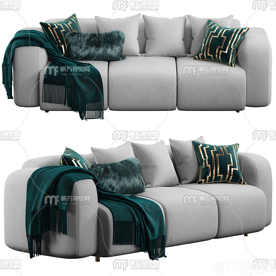 现代布艺多人沙发3D模型(ID:0014941)