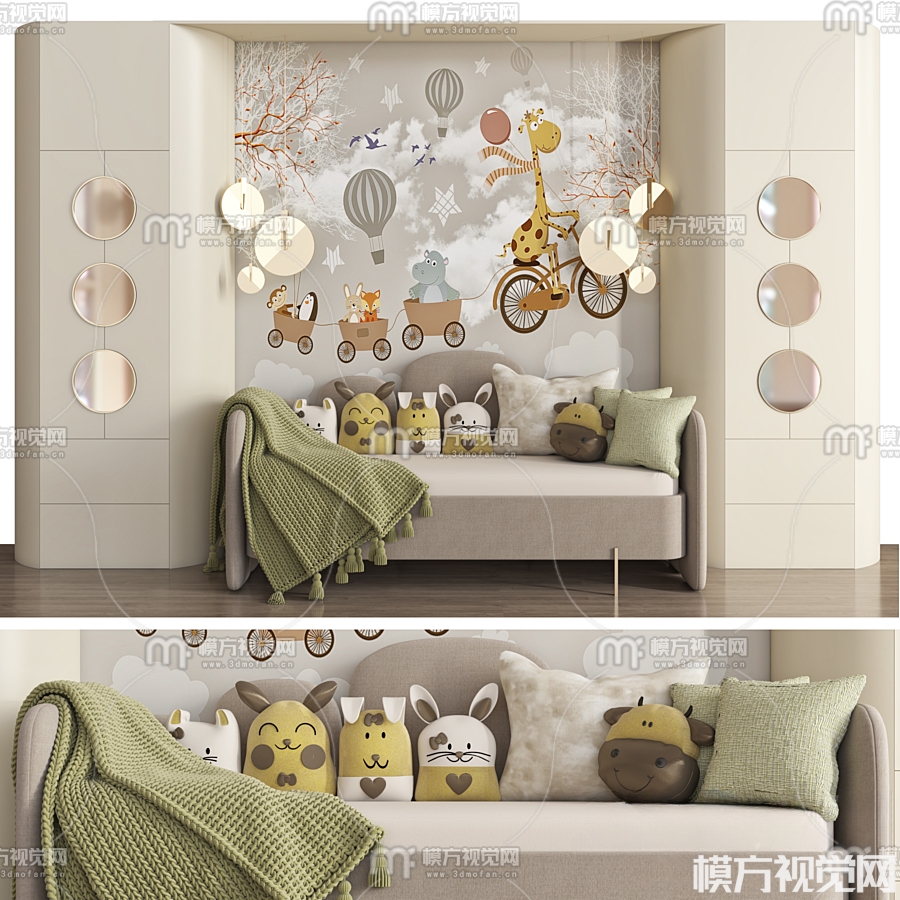 现代布艺儿童沙发3D模型(ID:0014945)