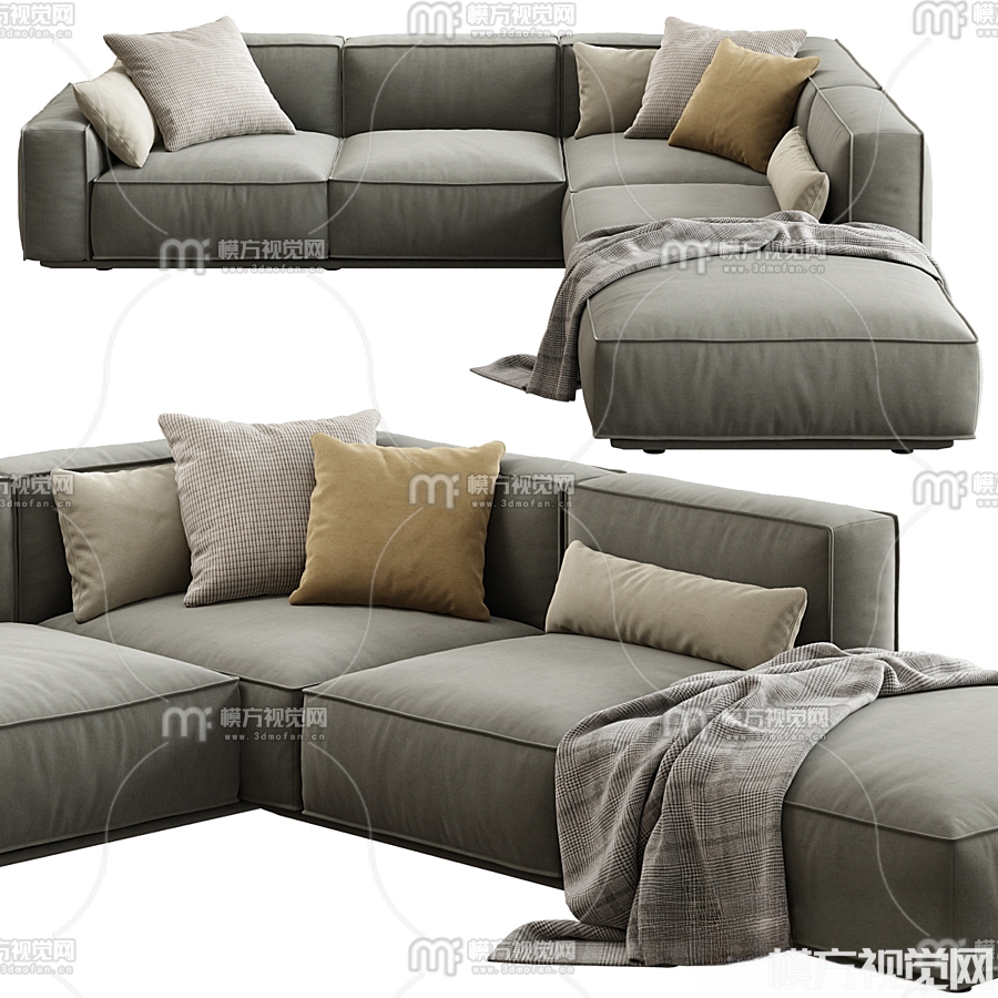 现代布艺休闲转角沙发3D模型(ID:0014949)
