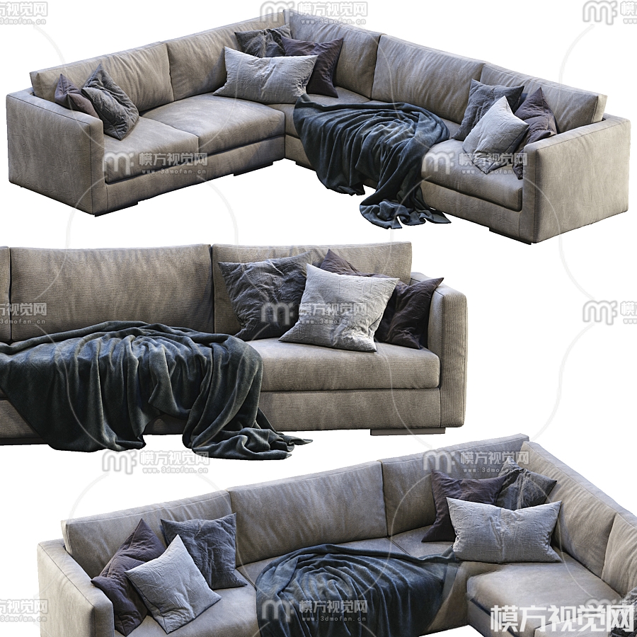 现代布艺转角多人沙发3D模型(ID:0014952)