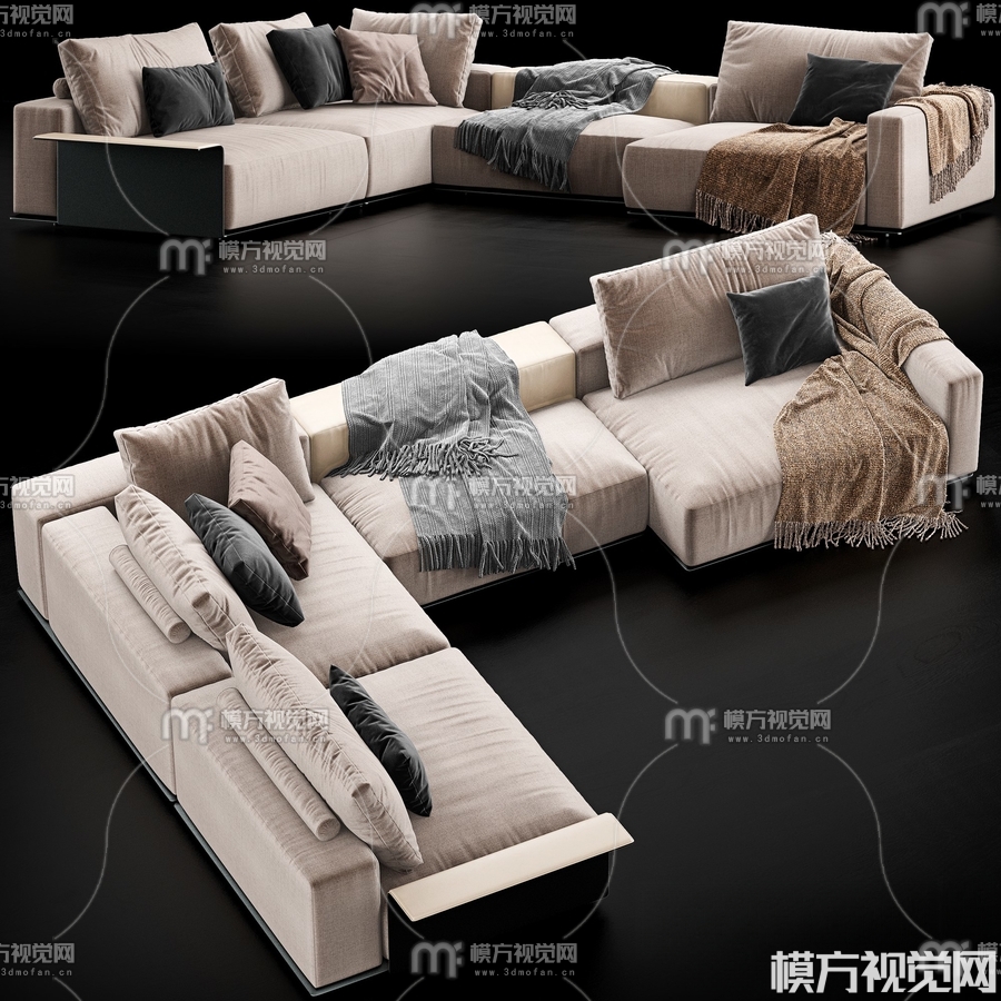 现代布艺转角多人沙发3D模型(ID:0014953)