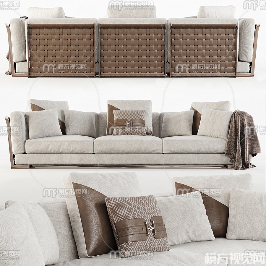 藤编沙发 多人沙发 三人沙发3D模型(ID:0014963)
