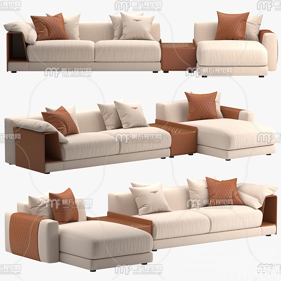 现代布艺多人沙发3D模型(ID:0014970)