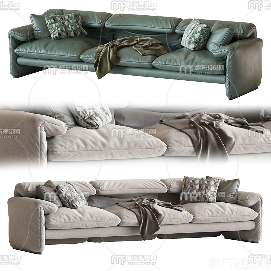 现代皮革布艺多人沙发3D模型(ID:0014975)