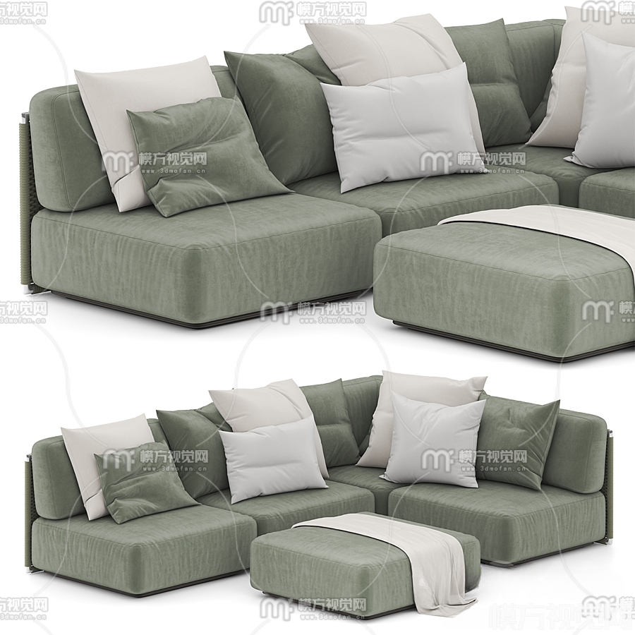 现代转角拼接多人沙发3D模型(ID:0014987)