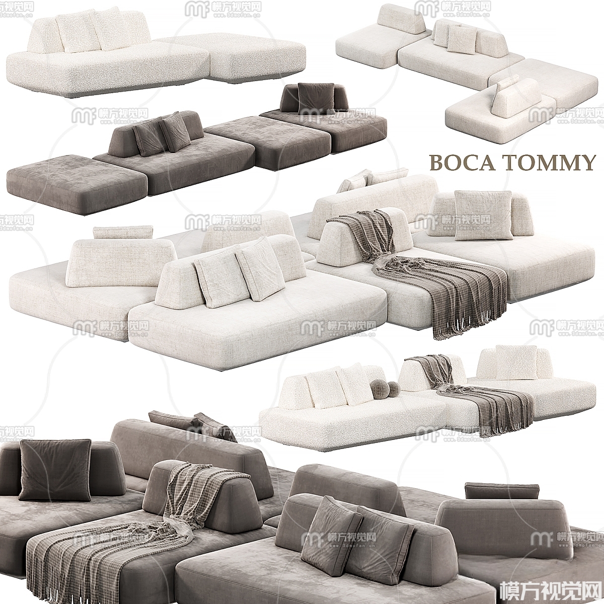 现代布艺多人沙发组合3D模型(ID:0015004)