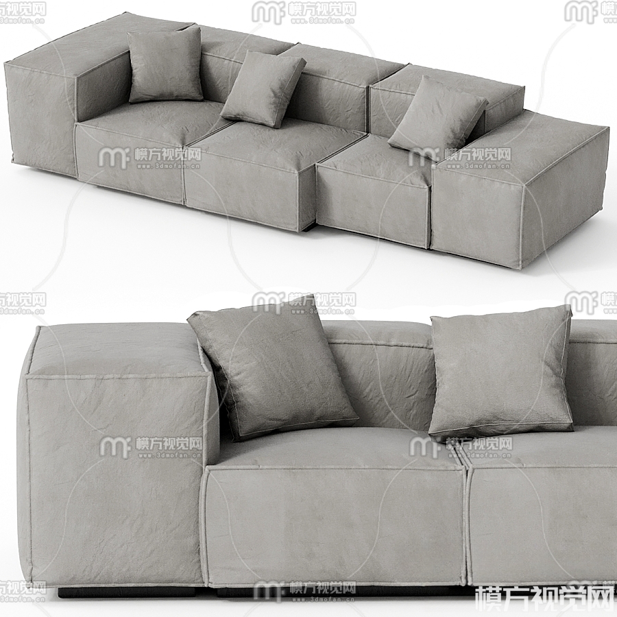 现代布艺多人沙发3D模型(ID:0015006)