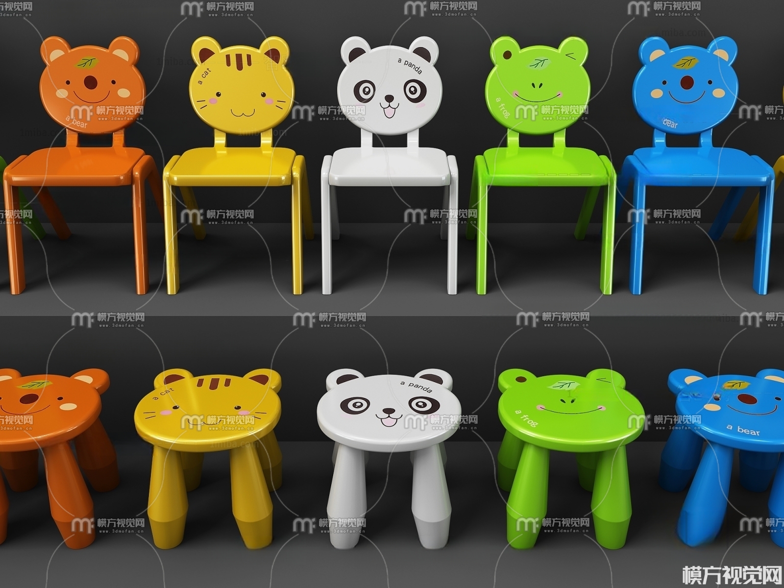现代儿童椅组合3D模型(ID:0001502)