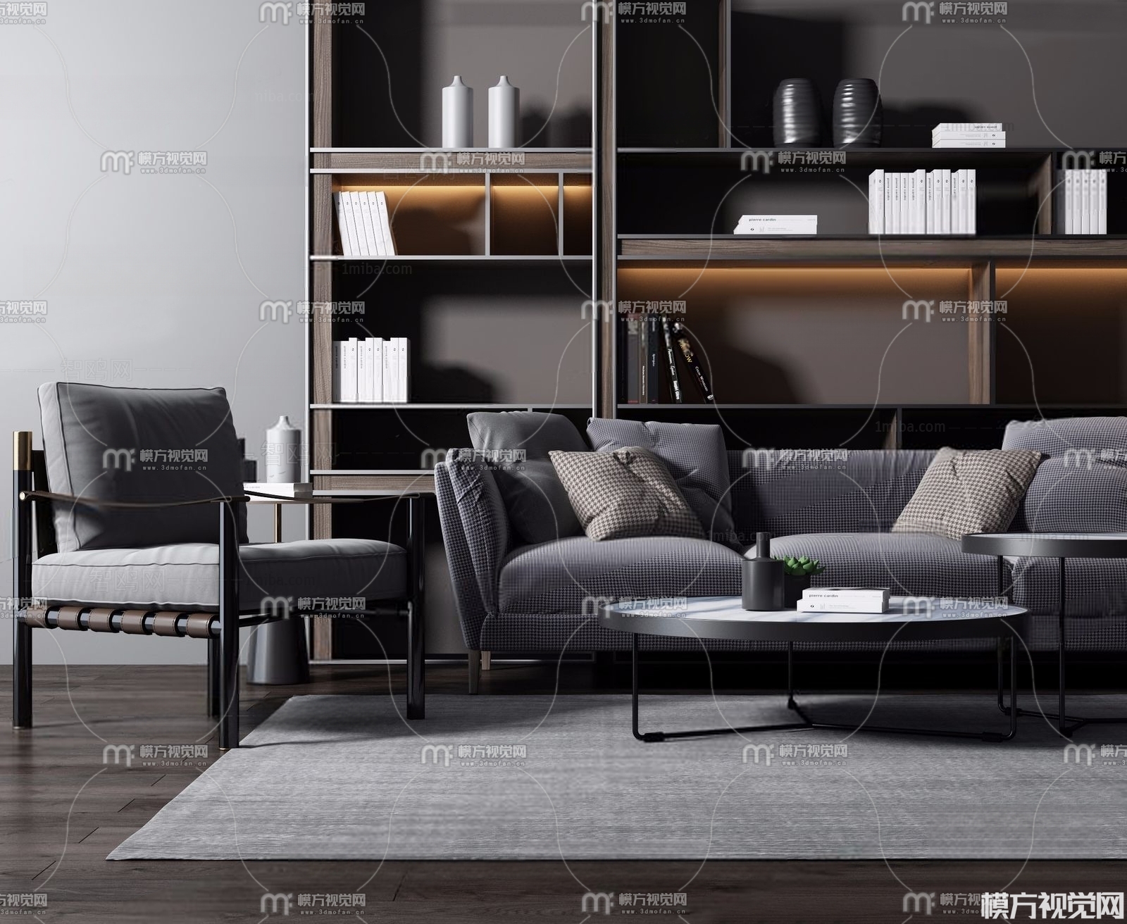 现代沙发茶几 装饰柜组合3D模型(ID:0001513)