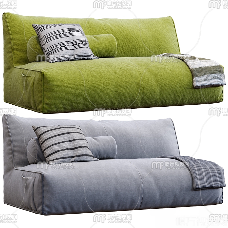 现代布艺双人休闲沙发3D模型(ID:0015169)