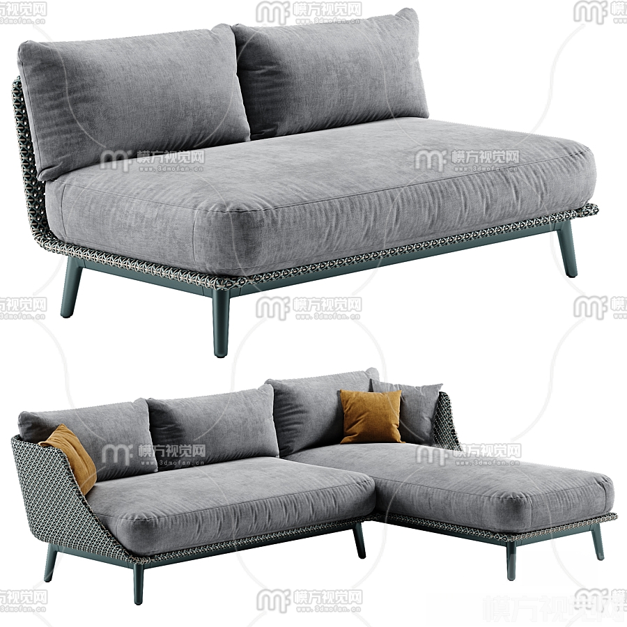 现代布艺转角沙发3D模型(ID:0015170)