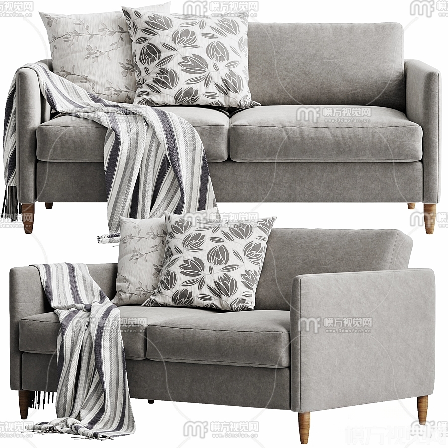 现代布艺双人沙发3D模型(ID:0015190)