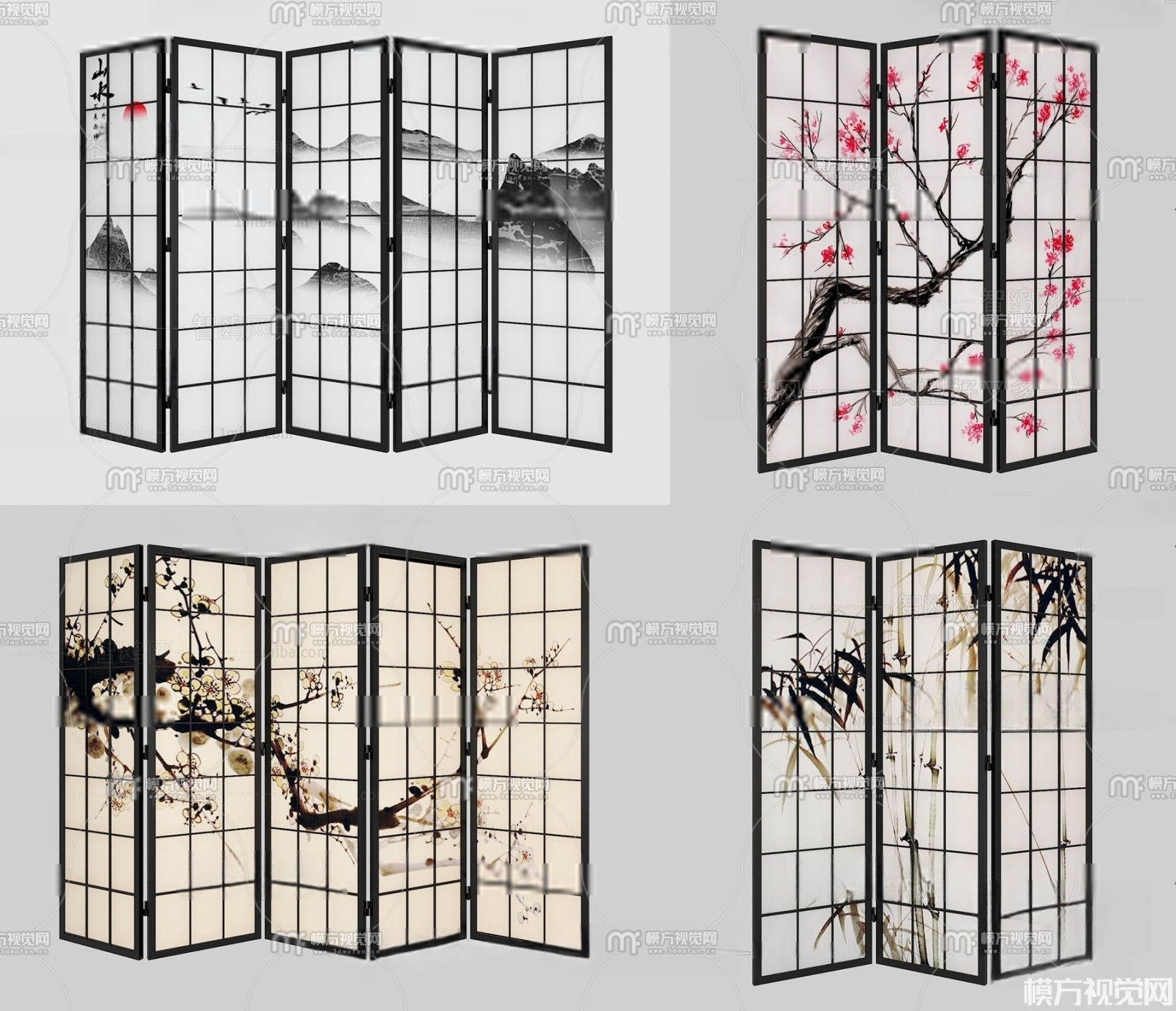 新中式隔断屏风3D模型(ID:0001524)
