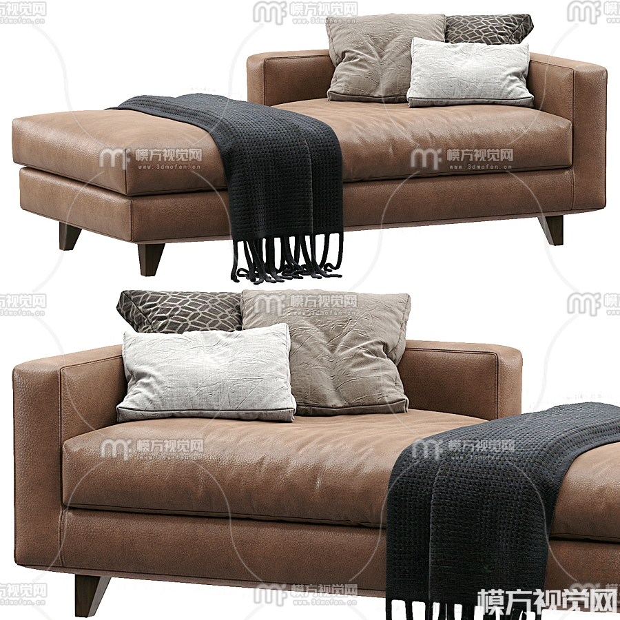 现代皮革多人沙发贵妃椅3D模型(ID:0015308)