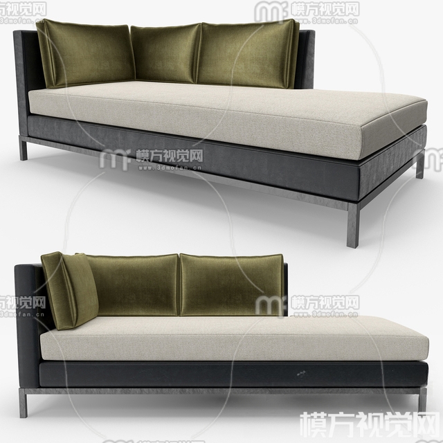现代布艺多人沙发贵妃椅3D模型(ID:0015309)