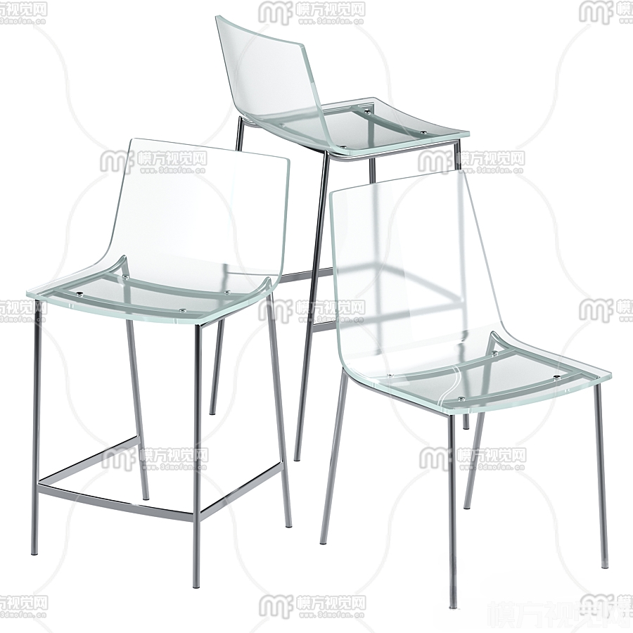 现代亚克力透明吧椅3D模型(ID:0015404)