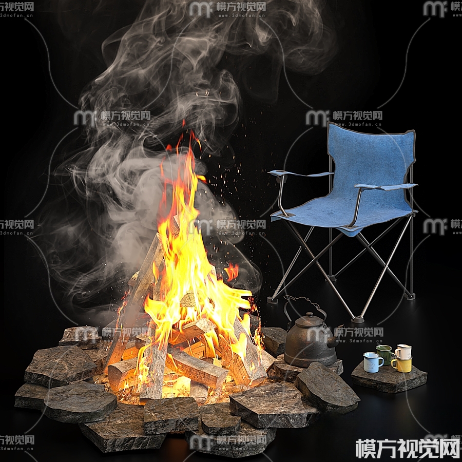 现代椅子篝火3D模型(ID:0015409)