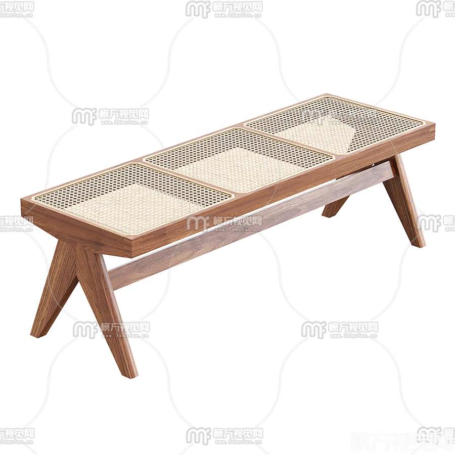 北欧木质藤编床尾凳3D模型(ID:0015509)