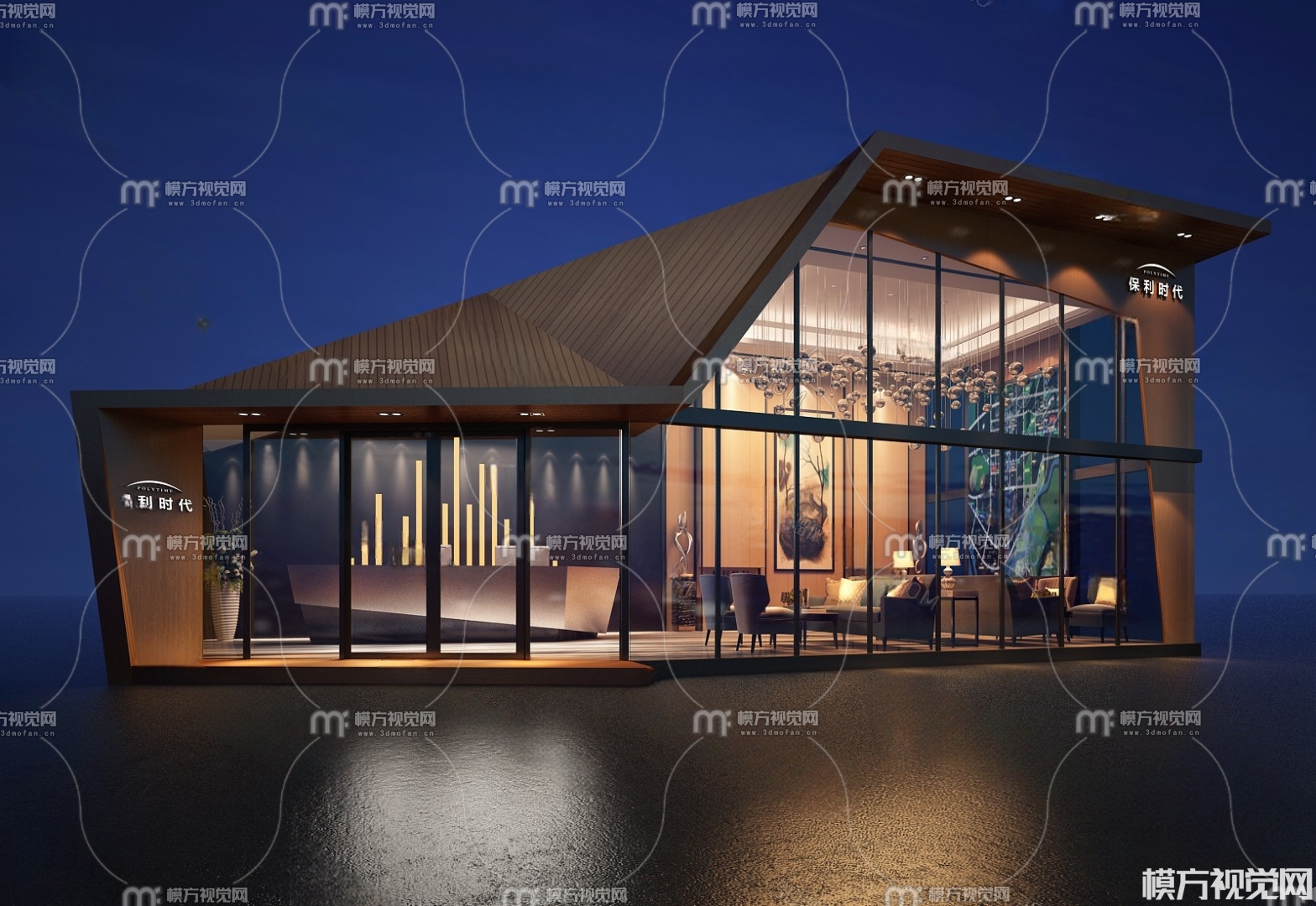 现代售楼处建筑外观D模型(ID:0001582)