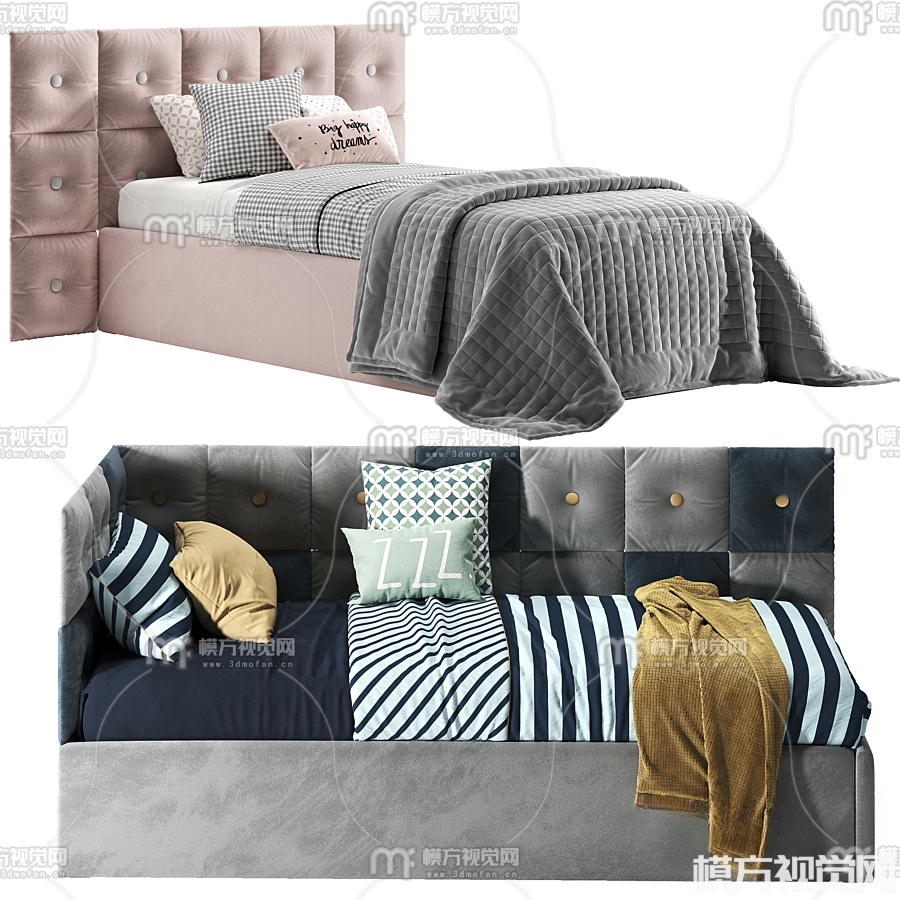 现代单人床3D模型(ID:0015998)