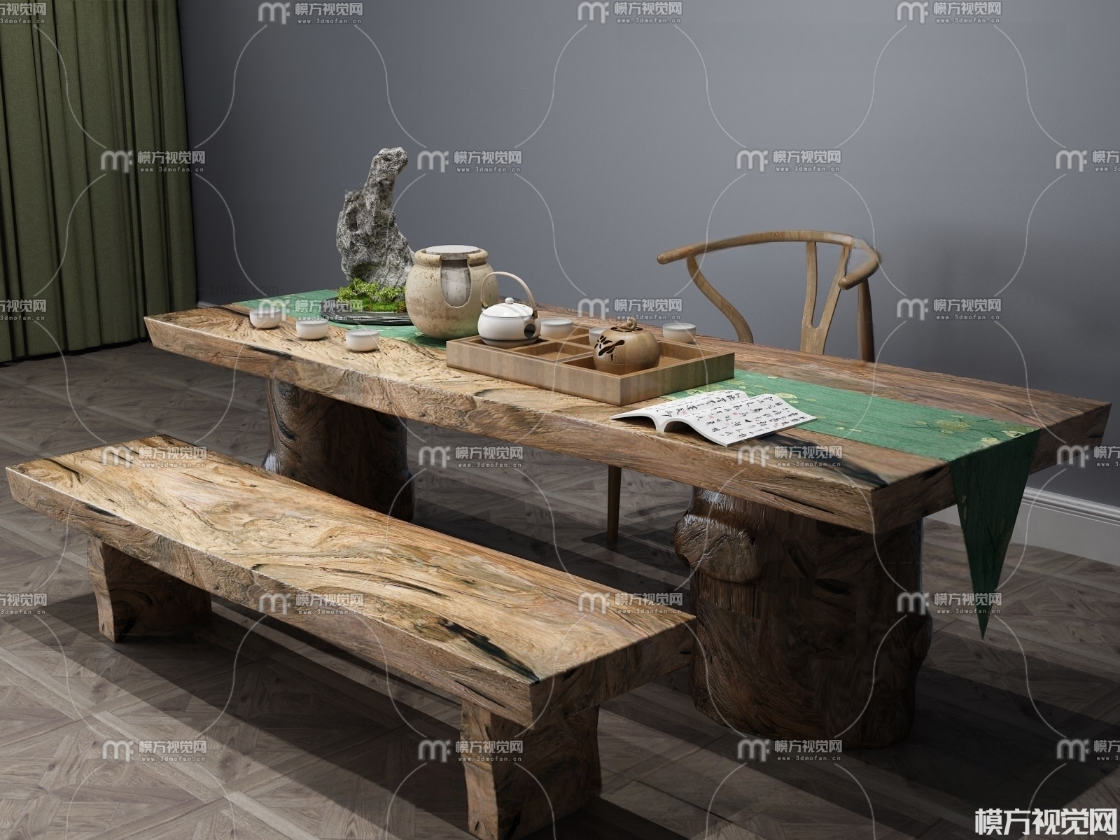 新中式茶桌椅 茶台3D模型(ID:0001602)