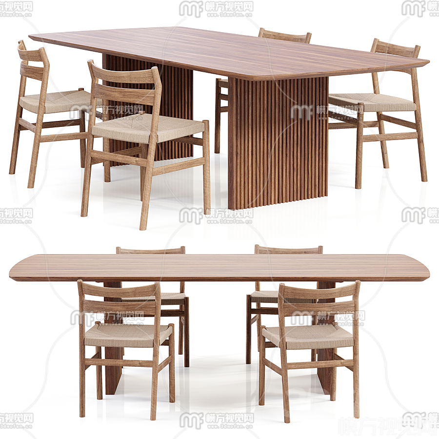 北欧实木餐桌椅组合3D模型(ID:0016034)