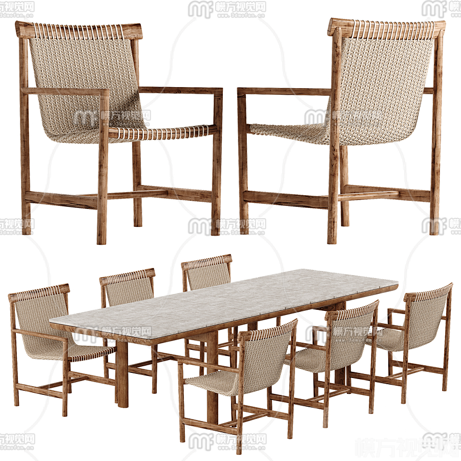 实木户外餐桌椅组合3D模型(ID:0016036)