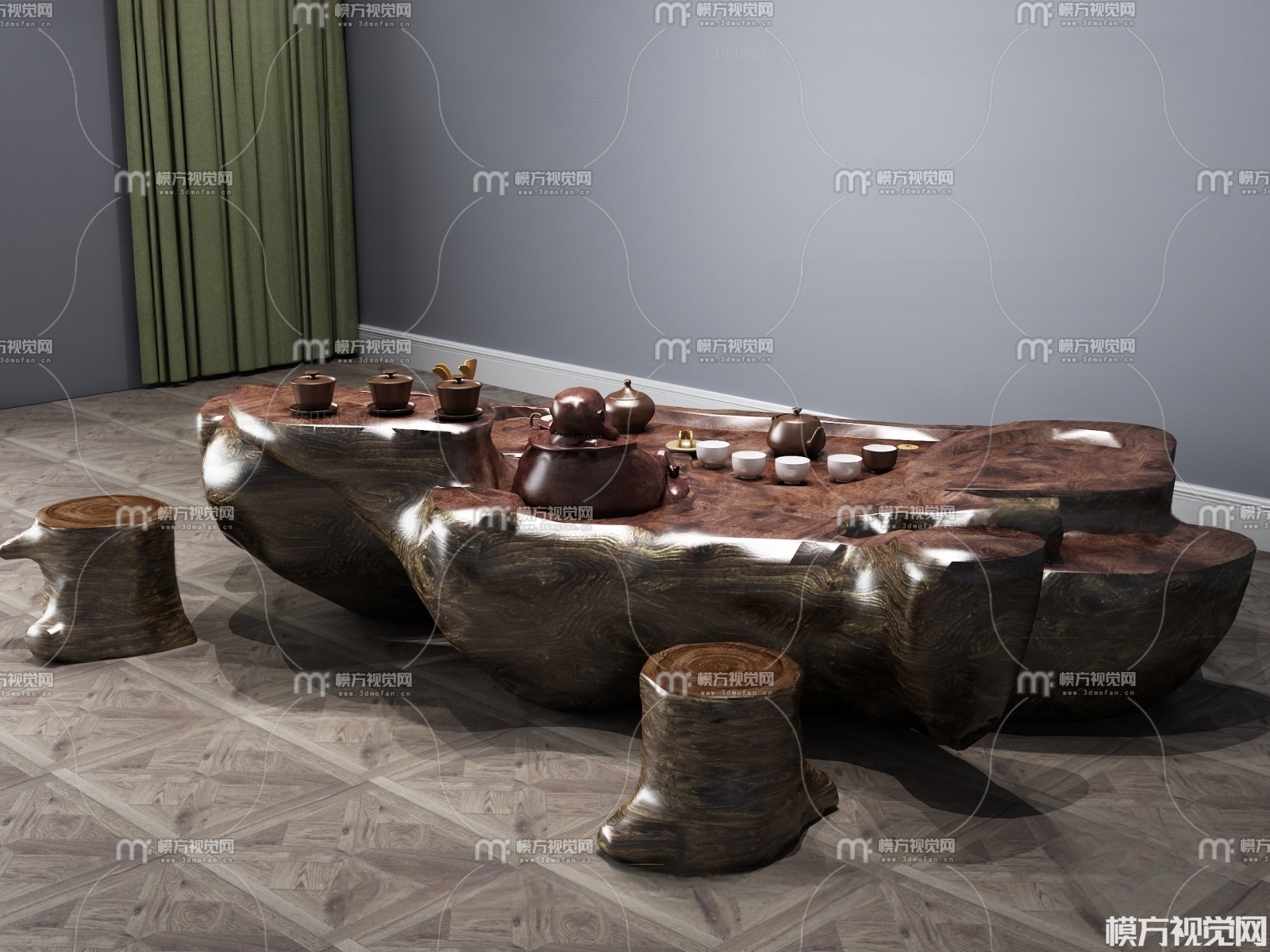 新中式茶桌椅 茶台 根雕3D模型(ID:0001604)