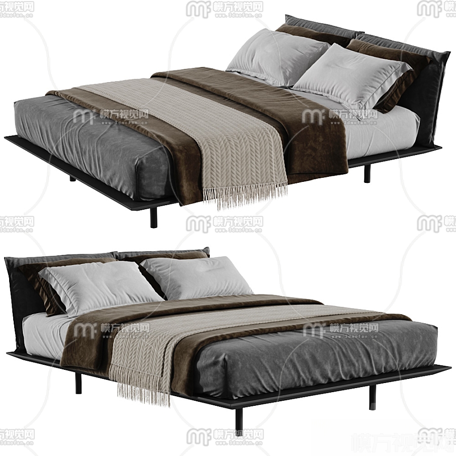 现代布艺双人床3D模型(ID:0016089)