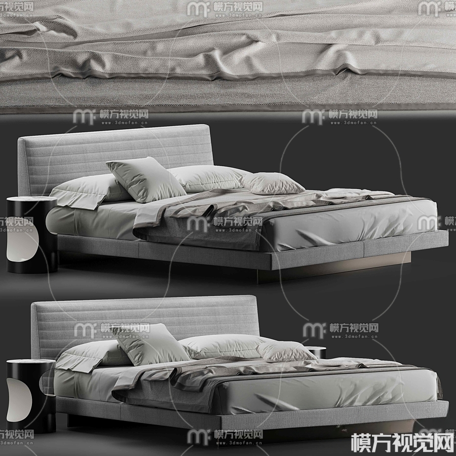 现代布艺双人床3D模型(ID:0016095)