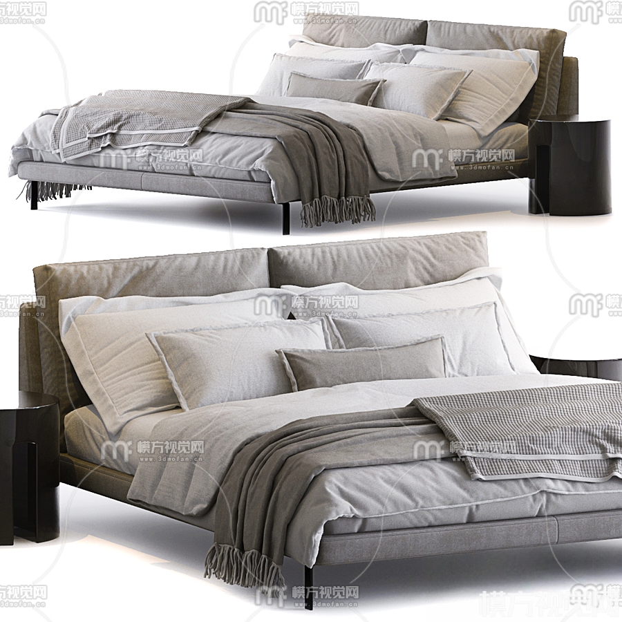 现代布艺双人床3D模型(ID:0016135)